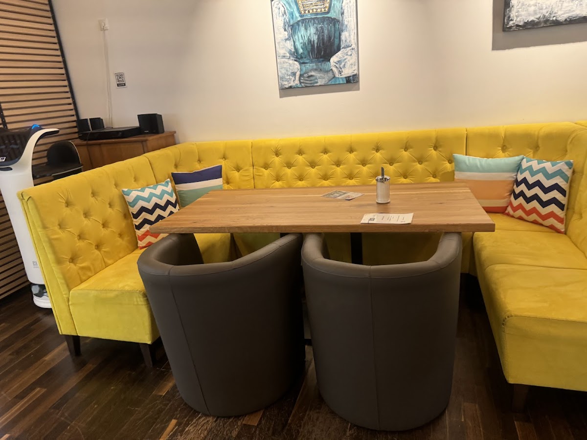 Das Personal ist sehr freundlich und es herrscht immer gute Stimmung. Auch wenn viel los ist, wartet man nicht lange auf seine Bestellung. Die Eineichtung ist einladend und die sich ändernden Kunstwerke einen Blick wert. Wir sind sehr gerne da!