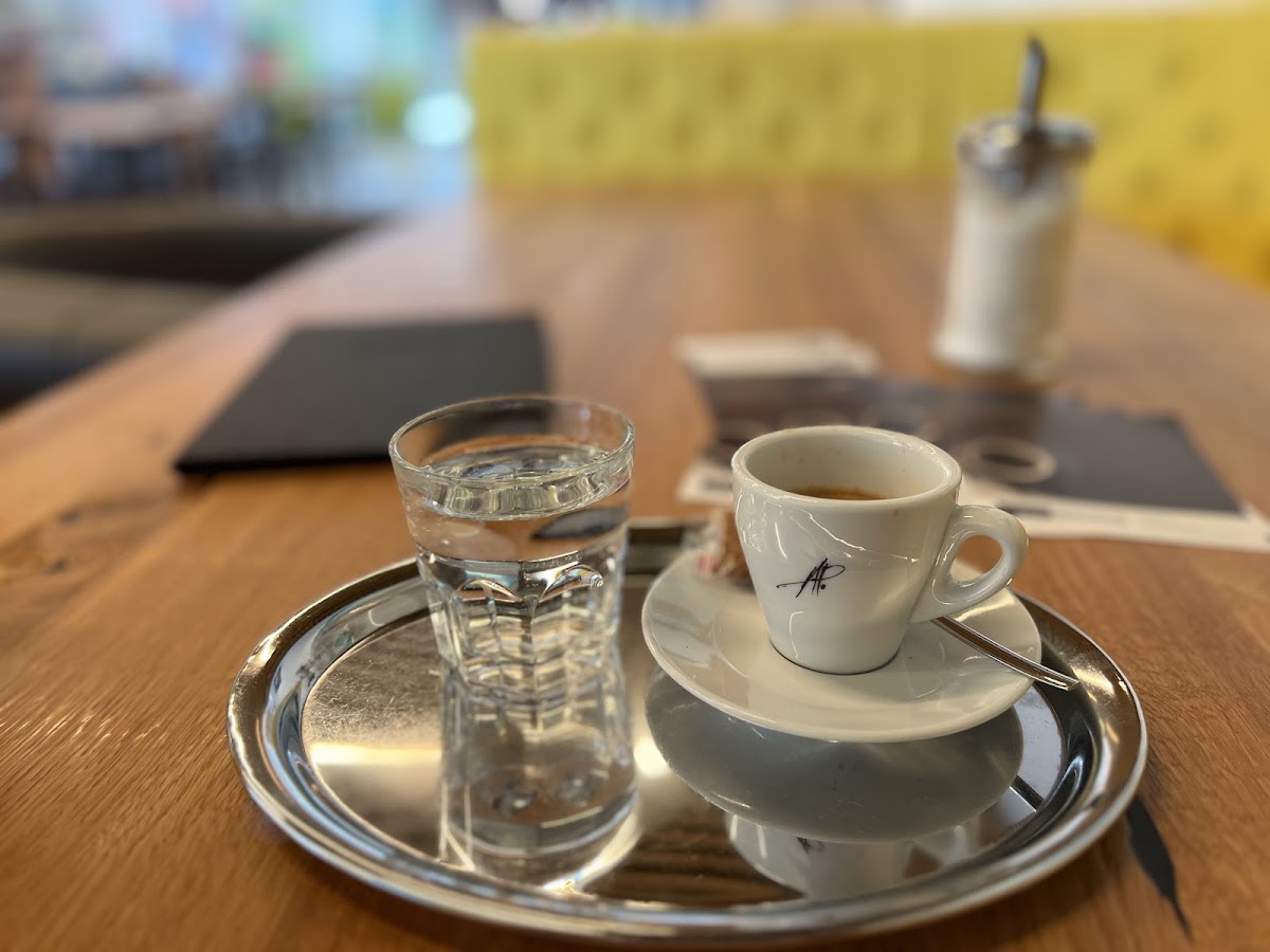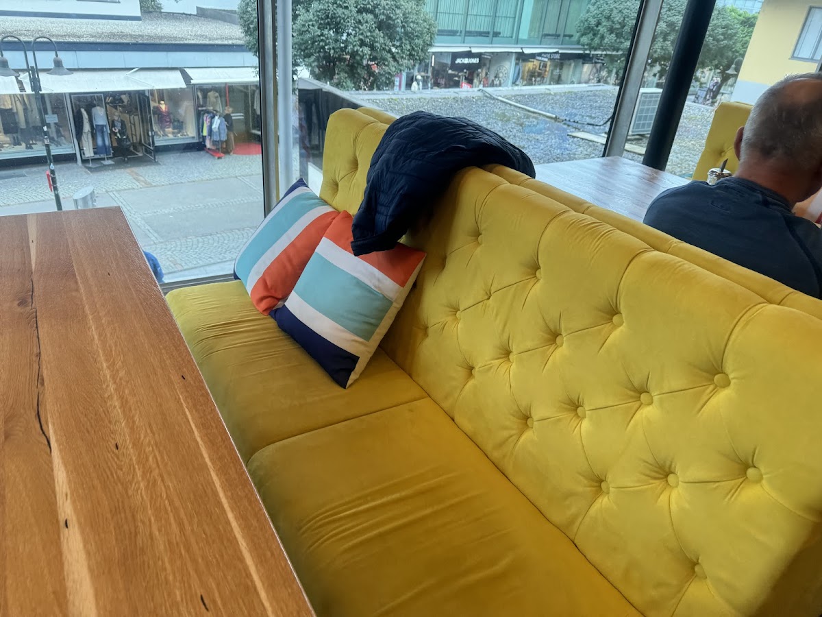 Ein sehr gemütliches feines Cafe im Mitten vom Stadtmarkt, ideal für Männer deren Frauen vom Shoppen nicht genug bekommen . Feine kleine überschaubare Speisekarte die jedem bestimmt was zu bieten hat sogar auch Kuchen, Gertränke von Annanassaft bis zum Zitronensaft viele Säft erhältlich so auch weitere Warme/Kalte Getränke.auch die Smoothibar im Erdgeschoß wo mit frisch gemixten TO-GO getränke anbietet ist sehr zu empfeheln. Service ist aufmerksam und stehts ein Lächeln im Gesicht... Macht weiter so.